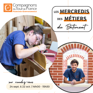 Le Centre de formation organise les deux premiers « Mercredis des métiers du Bâtiment » de la rentrée le 24 septembre et le 22 octobre de 14h00 à 15h30.