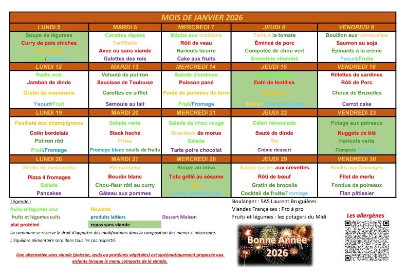 Télécharger les menus du mois de janvier 2026