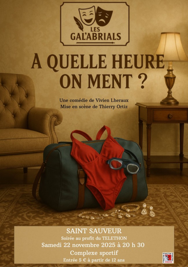 La troupe de théâtre "Les Gal'abrials" sera sur les planches du complexe sportif de Saint-Sauveur avec sa pièce : "À quelle heure on ment ?", une comédie de Vivien Lheraux, mise en scène de Thierry Ortiz.
